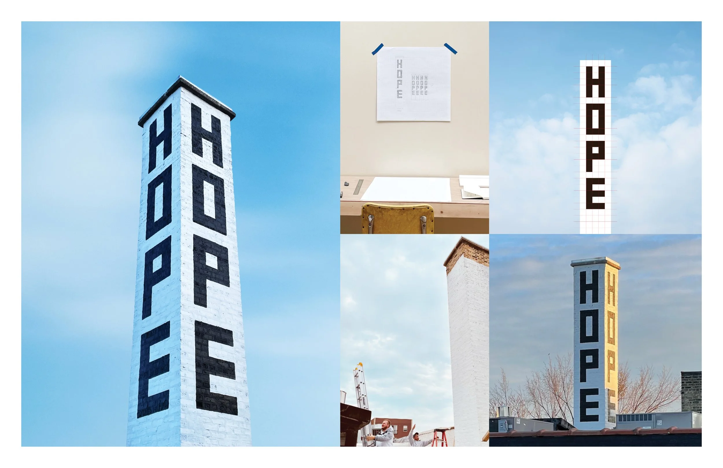 “High Hopes.” 4 words installed on the highest point of @kimballartschicago. A beacon of optimism curated by @johallaprojects.