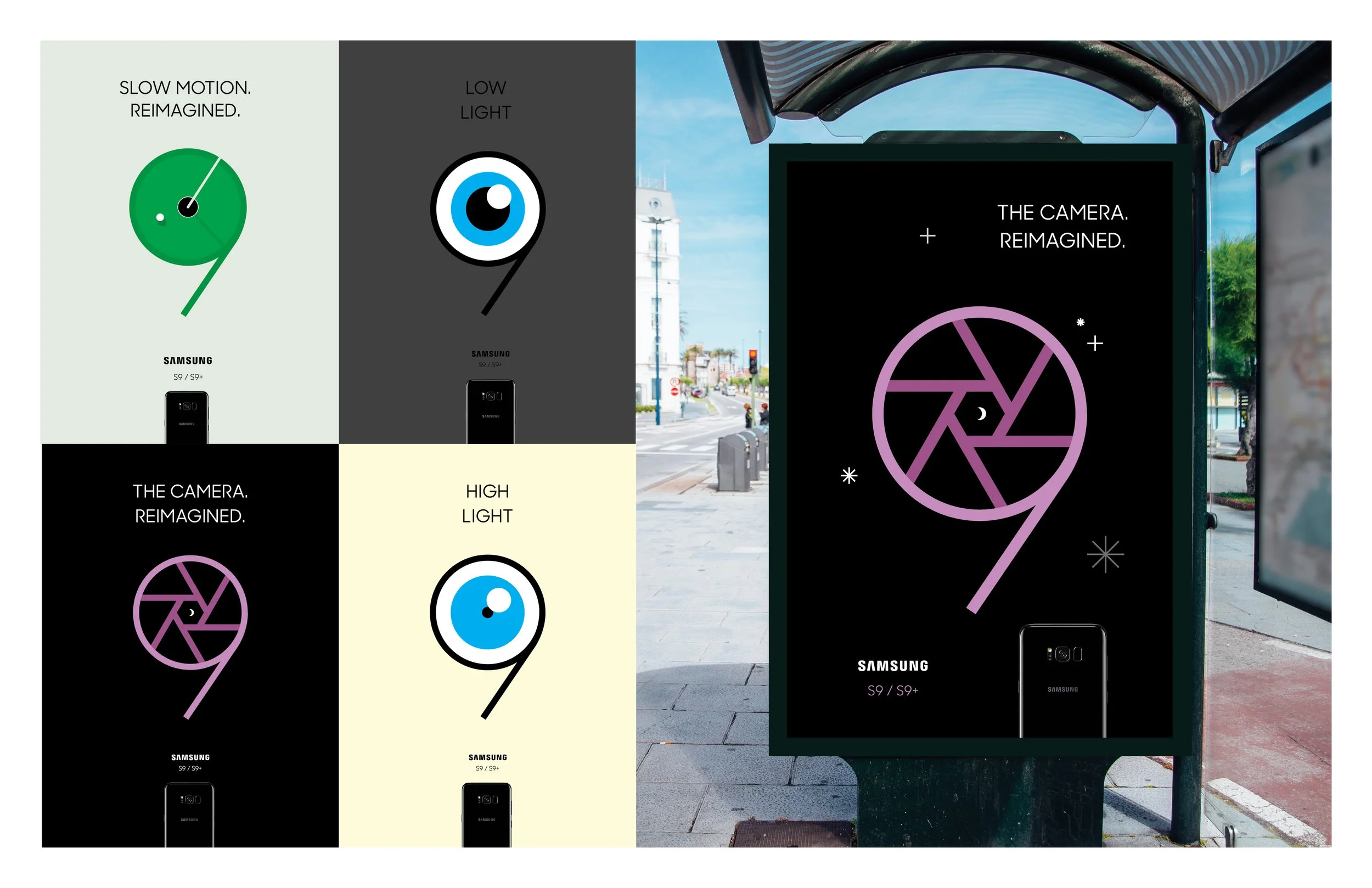Launch concept for the 9/9+ using the counter space of the “9” to highlight new product features.