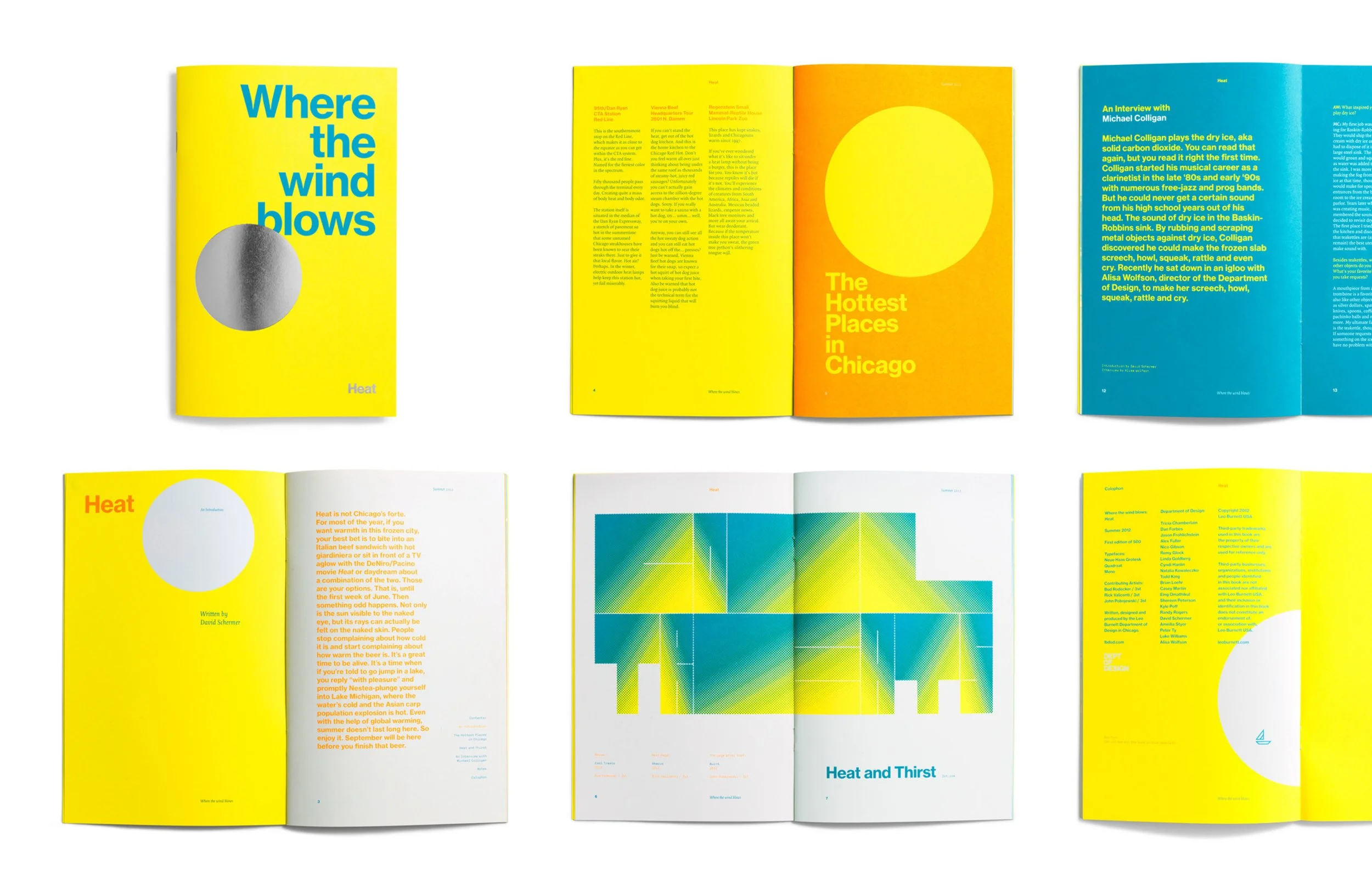 We wanted to build off a past project, Where the Wind Blows — An A–Z guide to Chicago — originally produced for the HOW conference the previous year. For the AIGA members meeting this summer we decided to build on the guide concept and explore a seasonal theme for our city. "Heat" is a locals guide to all things hot in Chicago.