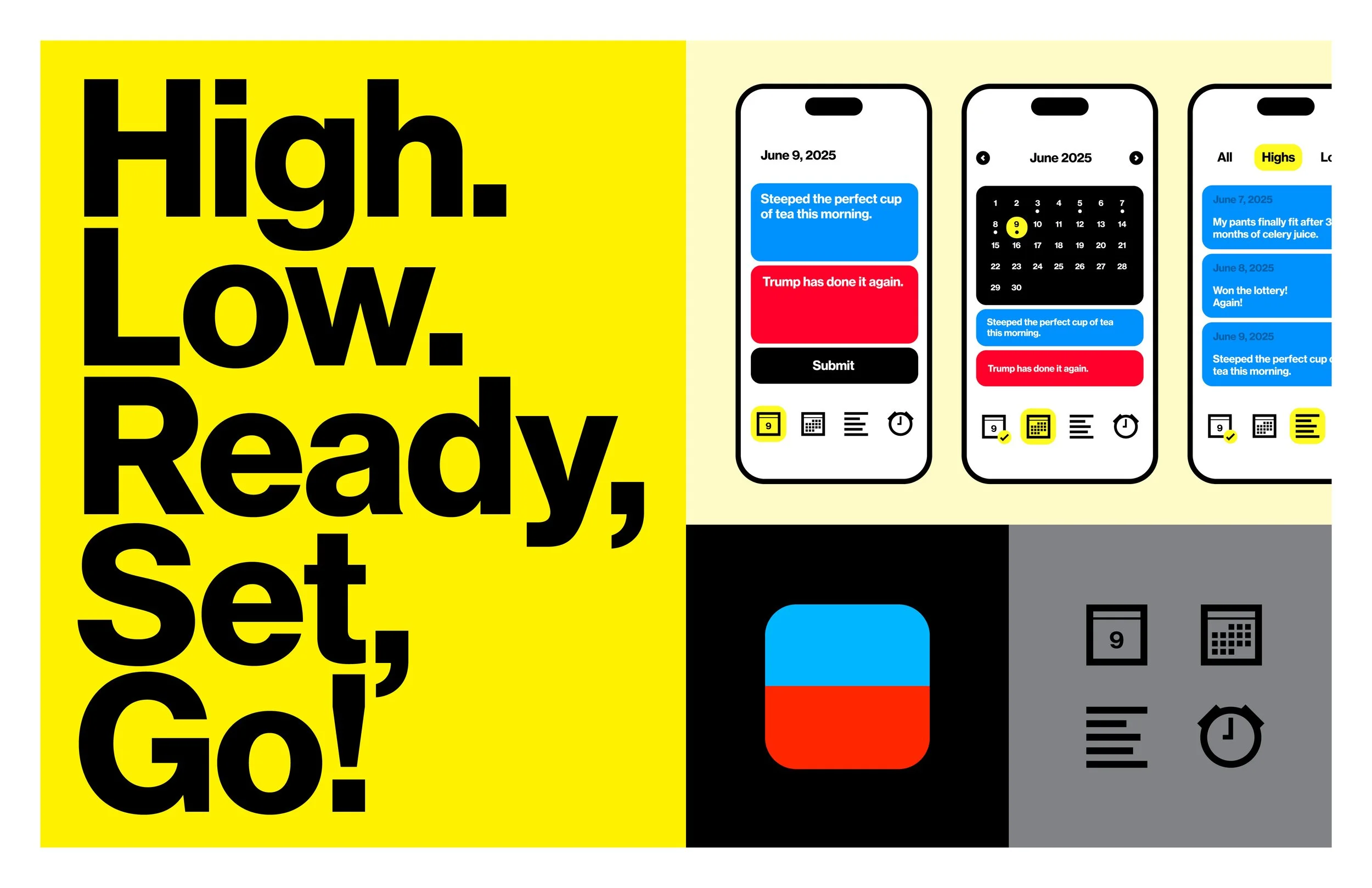 Highs & Lows™ is an iOS app that allows people to document and reflect on their day in a simple way. Hundreds of events that inspire a range of emotions and feelings fill our days. The app encourages people to consider their day in a direct and thoughtful way by distilling down those events and pulling out two simple points that sum up the extremes in a balanced entry.