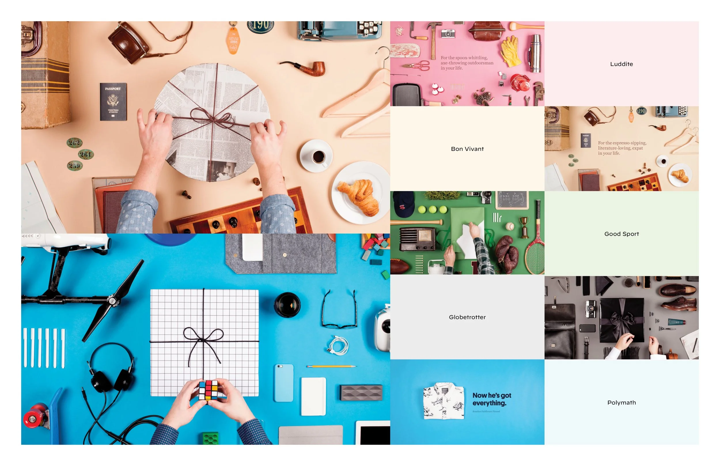 Stop motion videos highlighting a range of personalities for the mens holiday gift guide.