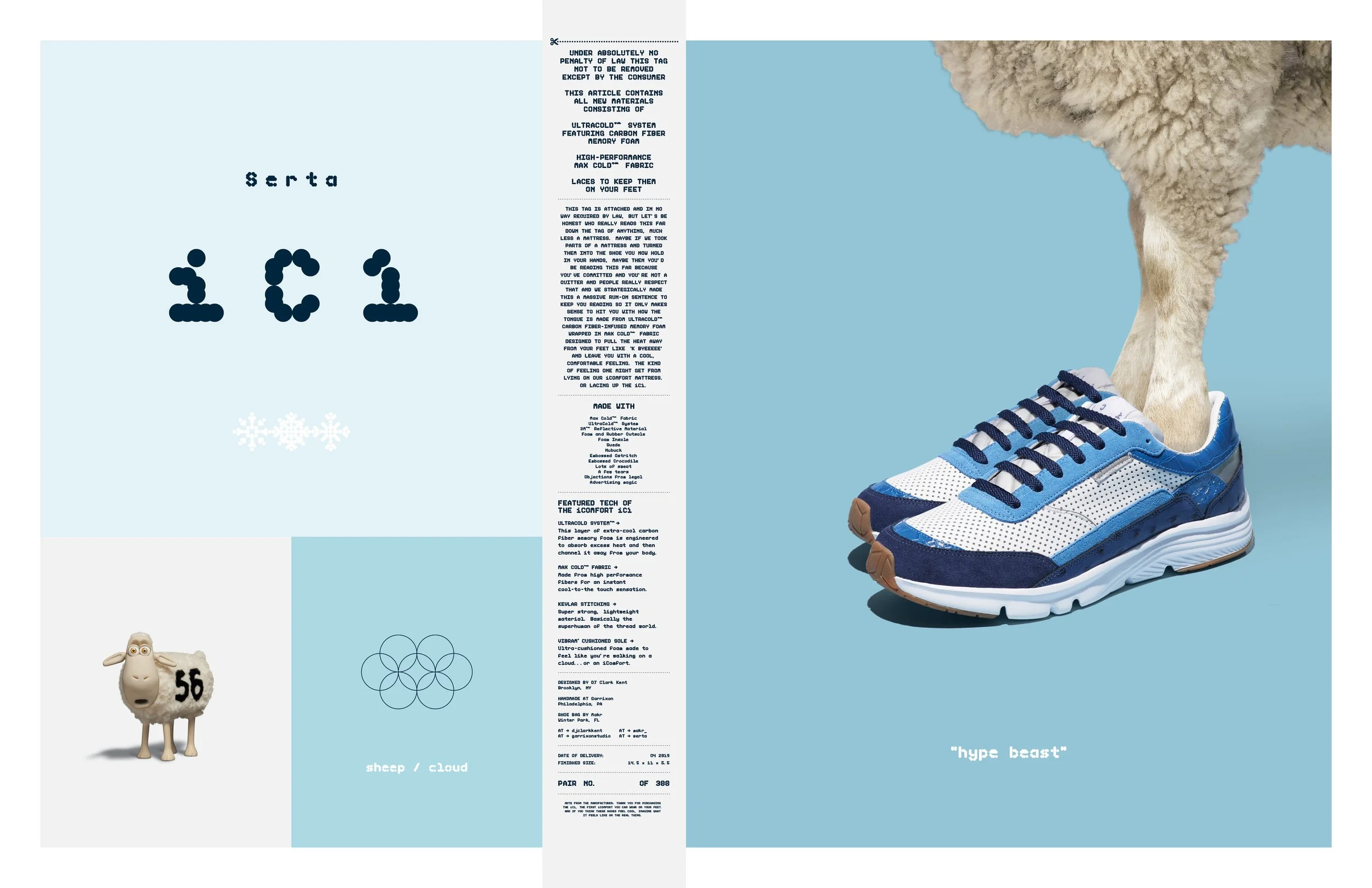 The iC1 is a mattress you can try on your feet. As a way to engage a new, younger audience we created a custom sneaker using the performance materials from the Serta iComfort mattress.