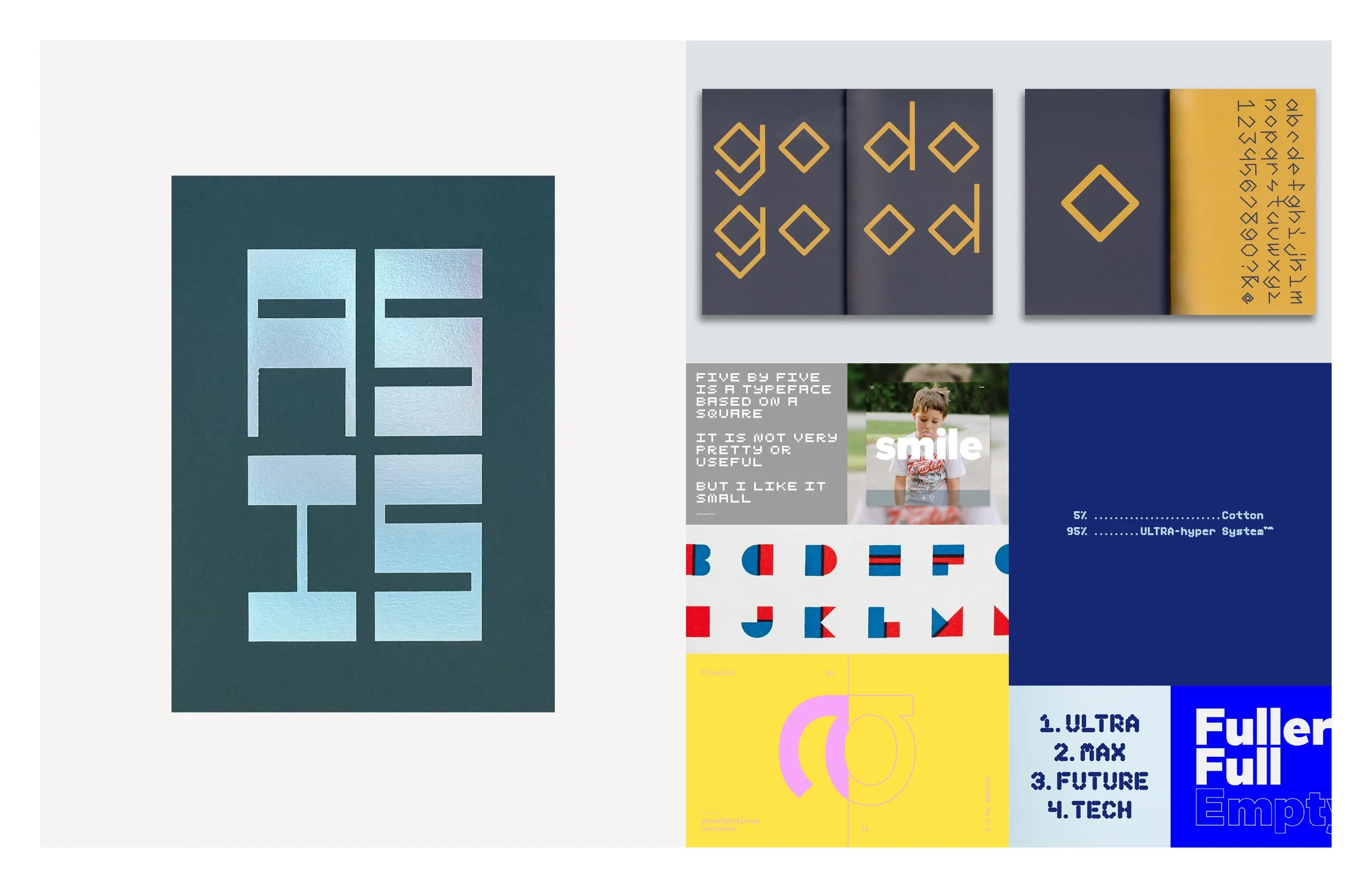 Lettering and typeface design for publications, client projects and personal use. Featured: As Is, Bort, Ovis, 5x5, Alphablocks, Pinopolis and Fuller. There is a clear geometric theme happening here.